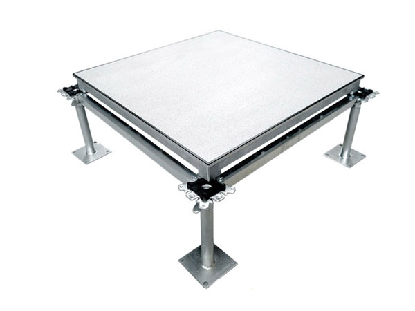 使用钢制镀锌支架、横梁通过螺丝固定,搭建成框架结构,地板放置于框架上,进行调平;根据不同使用环境(房间净空、地面布线量及线槽高度)可以采用不同高度支架进行选用,常规地板完成高度为10公分、15公分、20公分、25公分、30公分;其他所需高度可以根据现场需求进行定制;